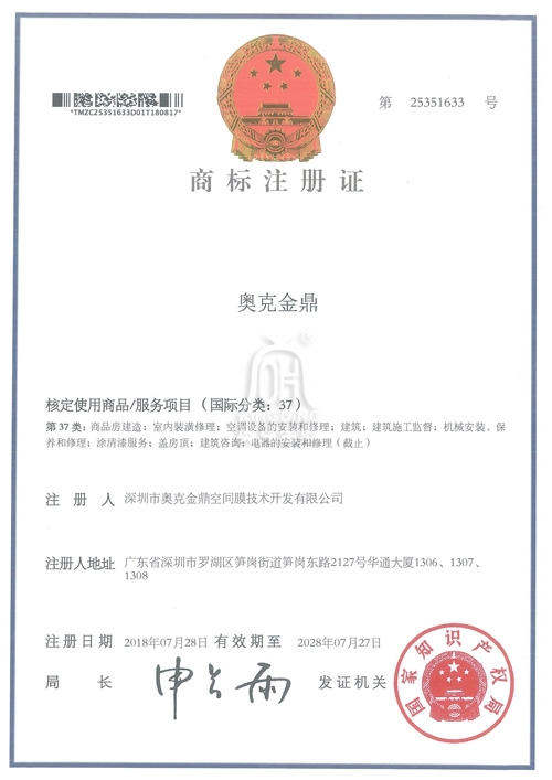 深圳市奧克金鼎空間膜技術(shù)開發(fā)有限公司成立已有18年,注冊資金1680萬,目前是國內(nèi)高端膜結(jié)構(gòu)技術(shù)公司之一。公司擁有先進的膜材,ETFE、PTFE及PVC自動加工設(shè)備和3D3S、3DMAX、 EASY、SMCAD、STCAD等多套設(shè)計軟件。公司以董事會為領(lǐng)導(dǎo)核心,下設(shè)總工辦、行政部、銷售部、采購部、設(shè)計部、網(wǎng)絡(luò)部、工程部、財務(wù)部等職能部門。